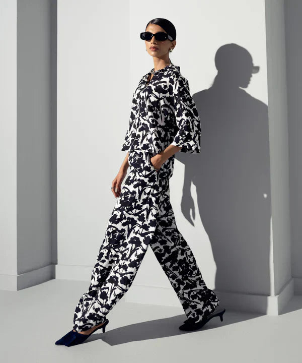PRINTED WIDE LEG TROUSERS